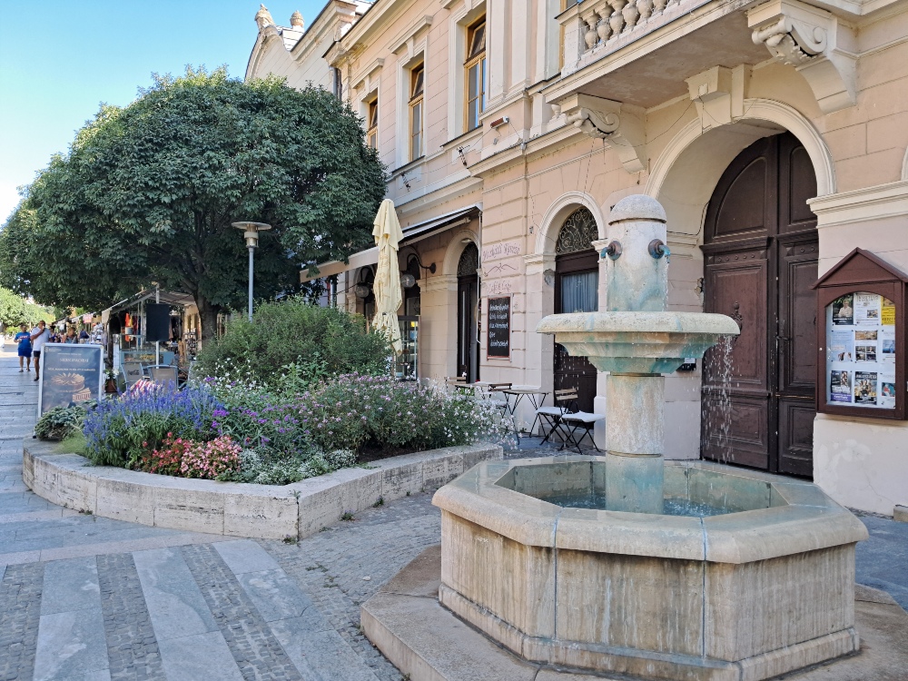 Keszthelyen a Fő téren áll a Városháza, a Magyarok Nagyasszonya Plébániatemplom, a színház és iskola.